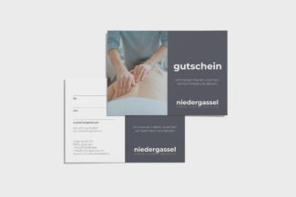 Für die Physiotherapie Niedergassel haben wir exklusiv gestaltete Gutscheine entwickelt. Die besondere Haptik des Papiers und die edle Prägung der Buchstaben verleihen jedem Gutschein eine hochwertige Ausstrahlung